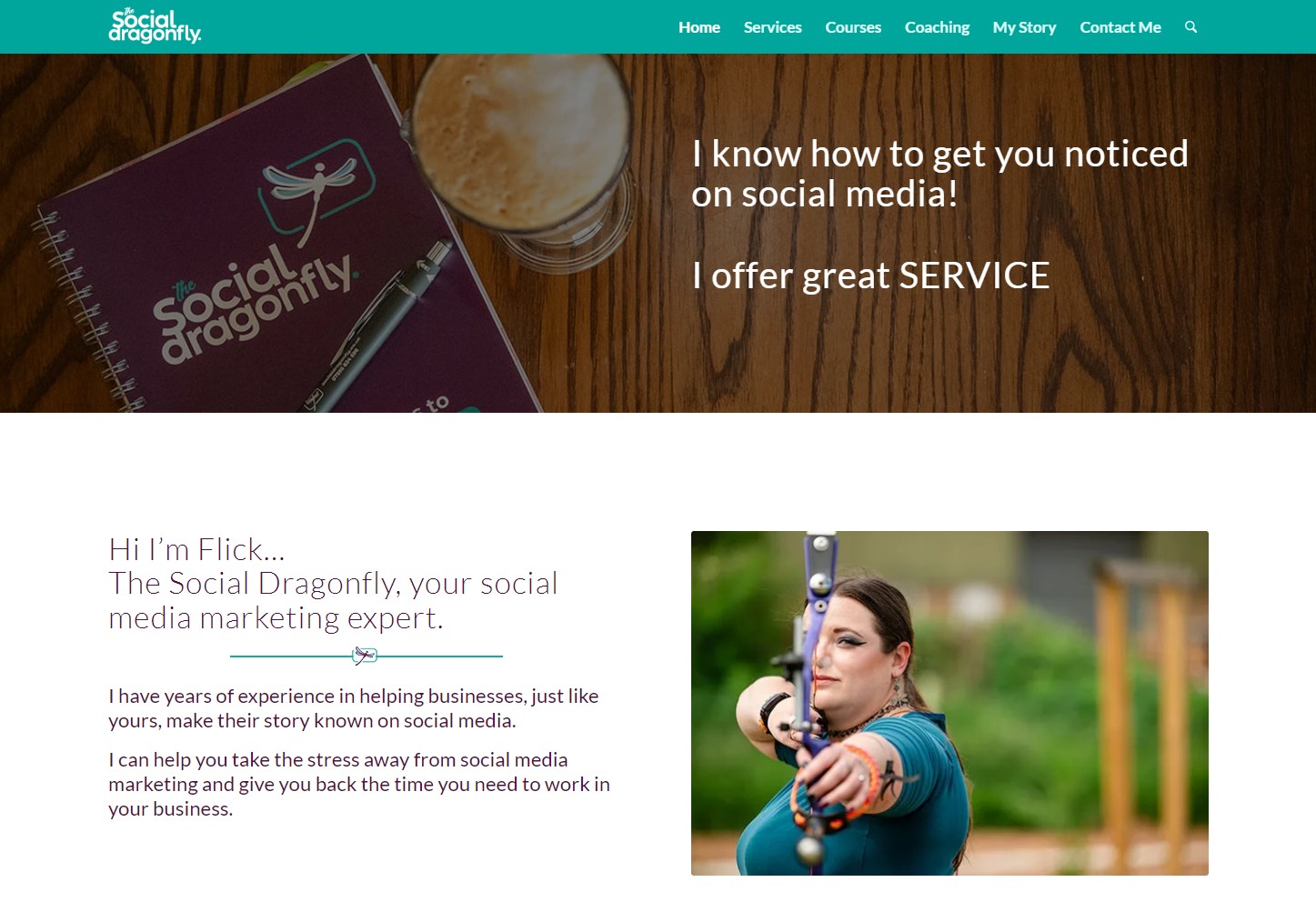 We were approached by Flick from Social dragonfly who asked us to look at her old website, with a view to updating it, to give it a fresh new look, to get over her voice and personality. She felt her old website did not reflect who she was as a person or as a business owner.